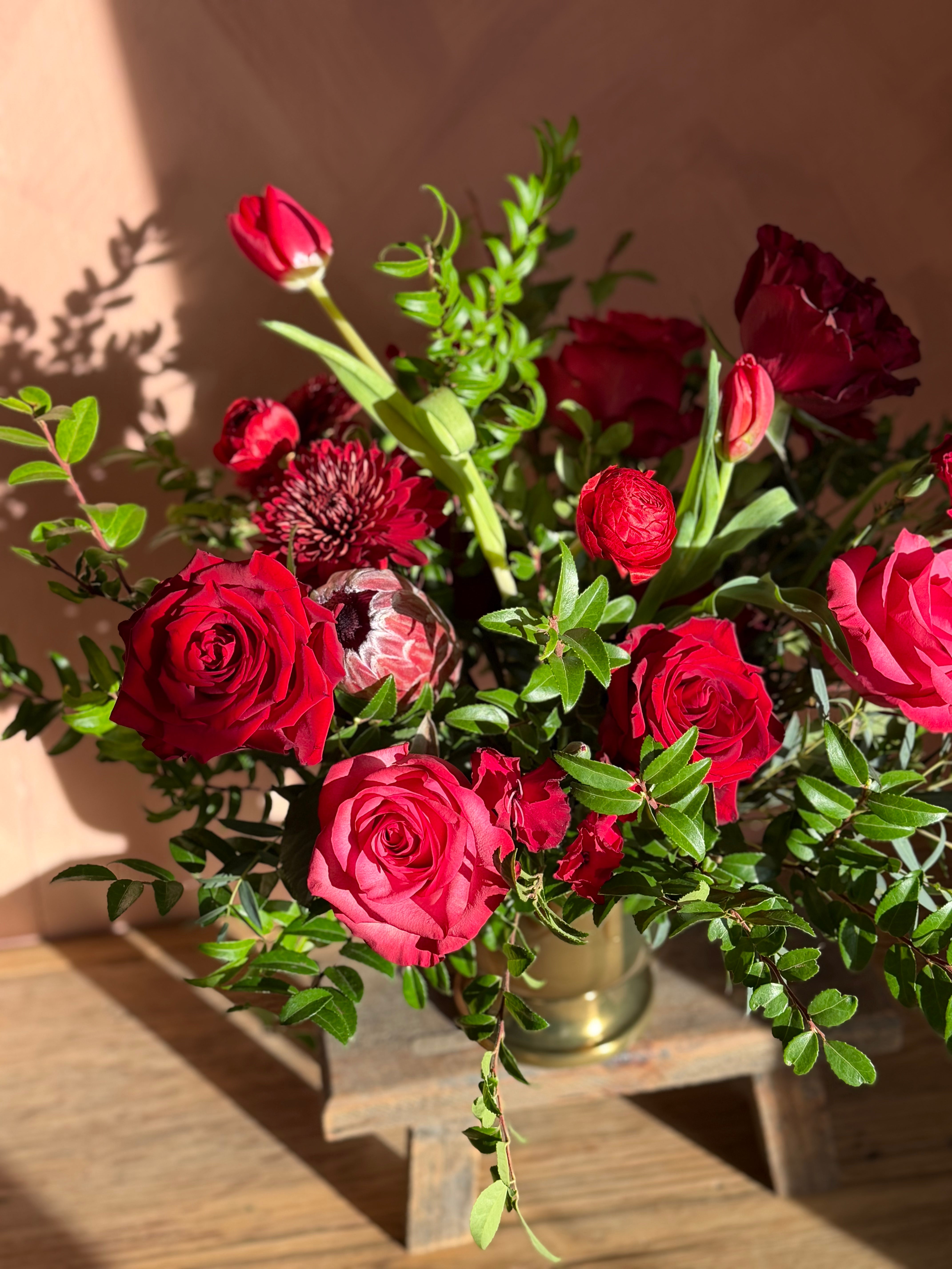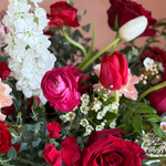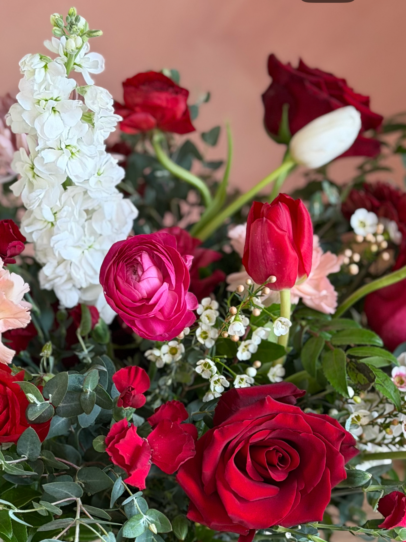 Classic Love: Deep reds, blush and pink tones balanced by whites and creams