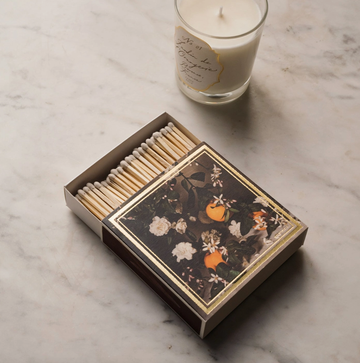 This beautiful match box pairs so well with one of our many candles! It makes a great addition to any one of our floral arrangements.