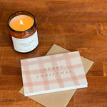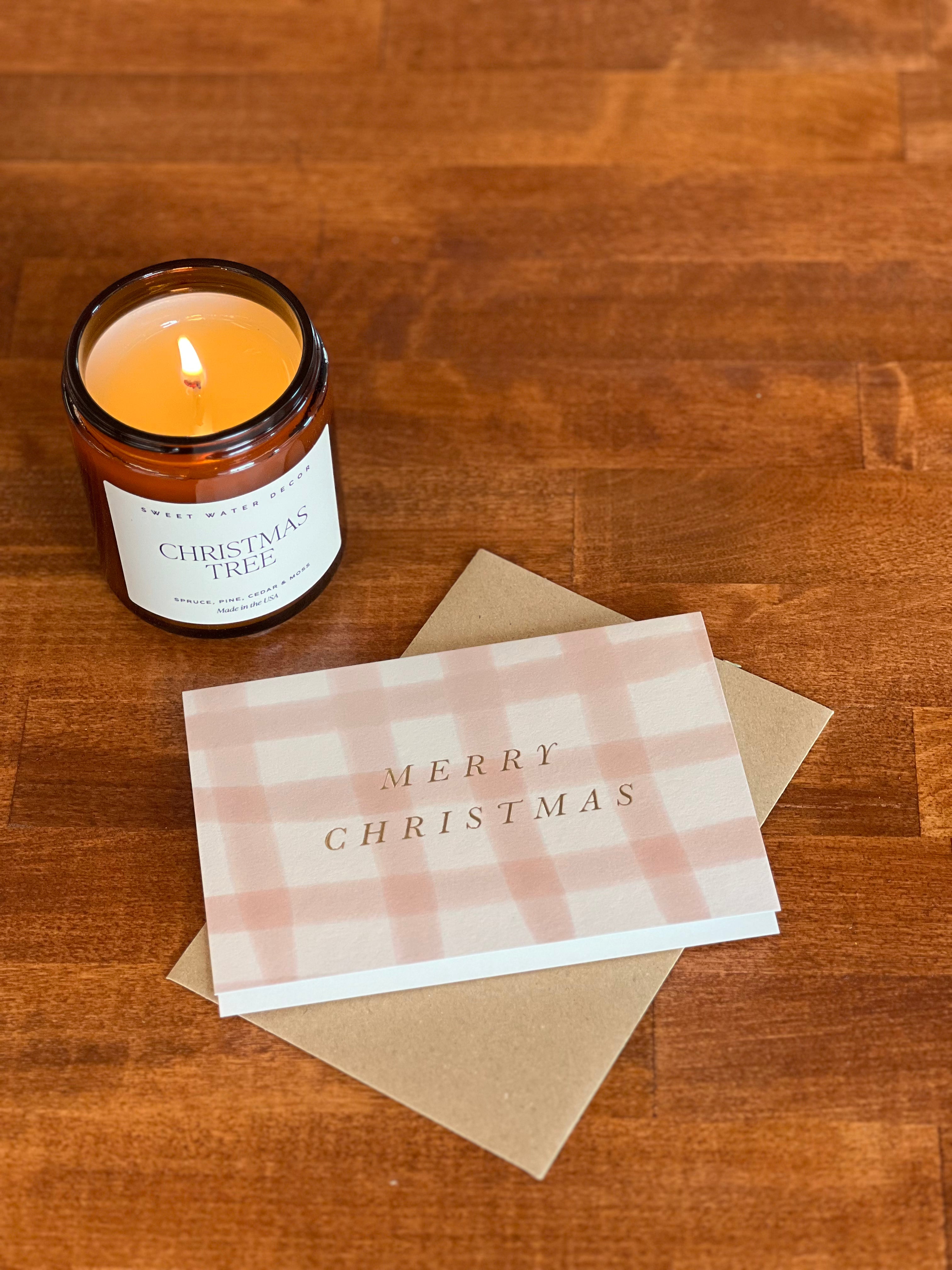 Simple "Merry Christmas" card with gold writing. Blank on the inside ready for your personalized message.