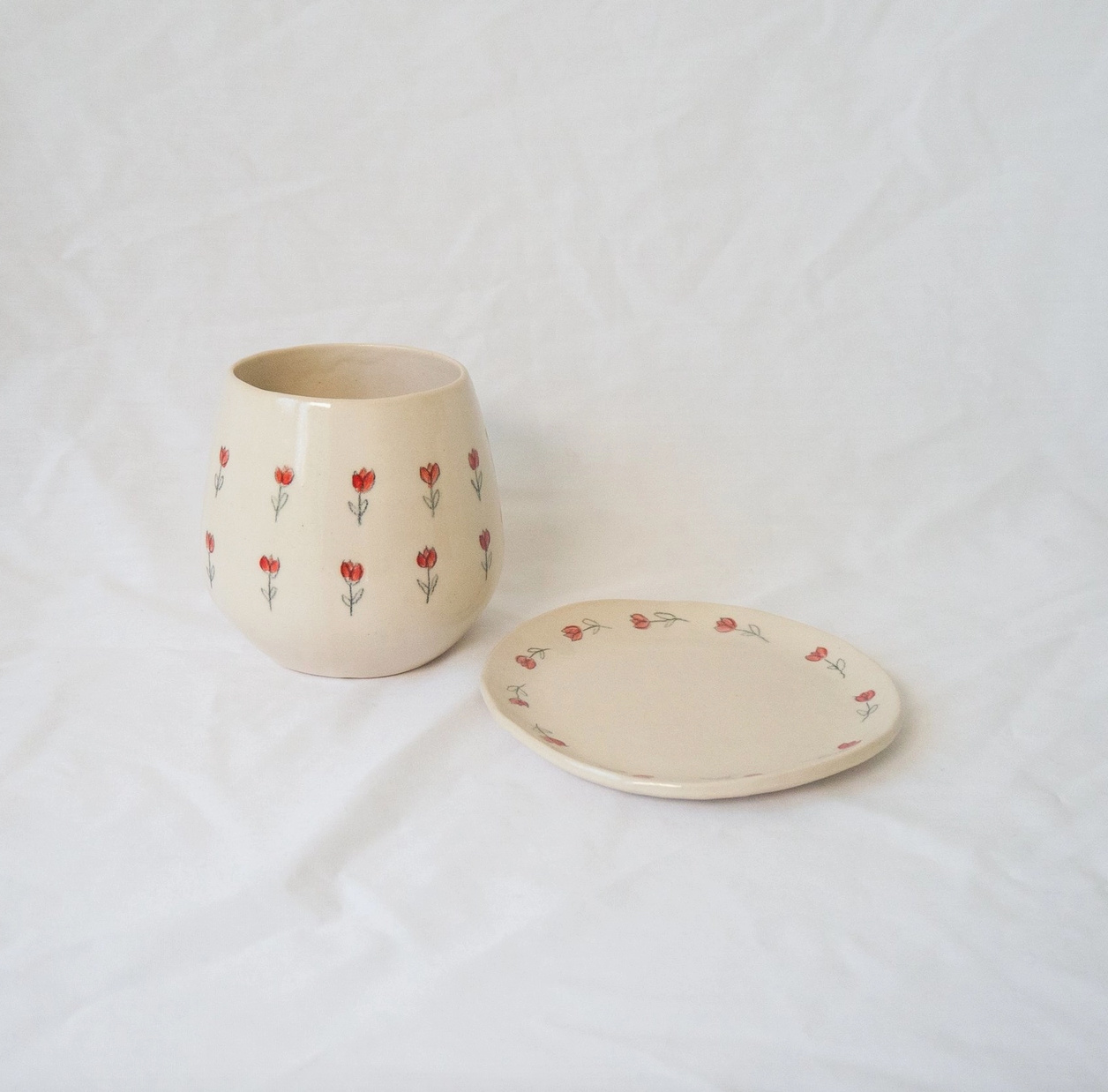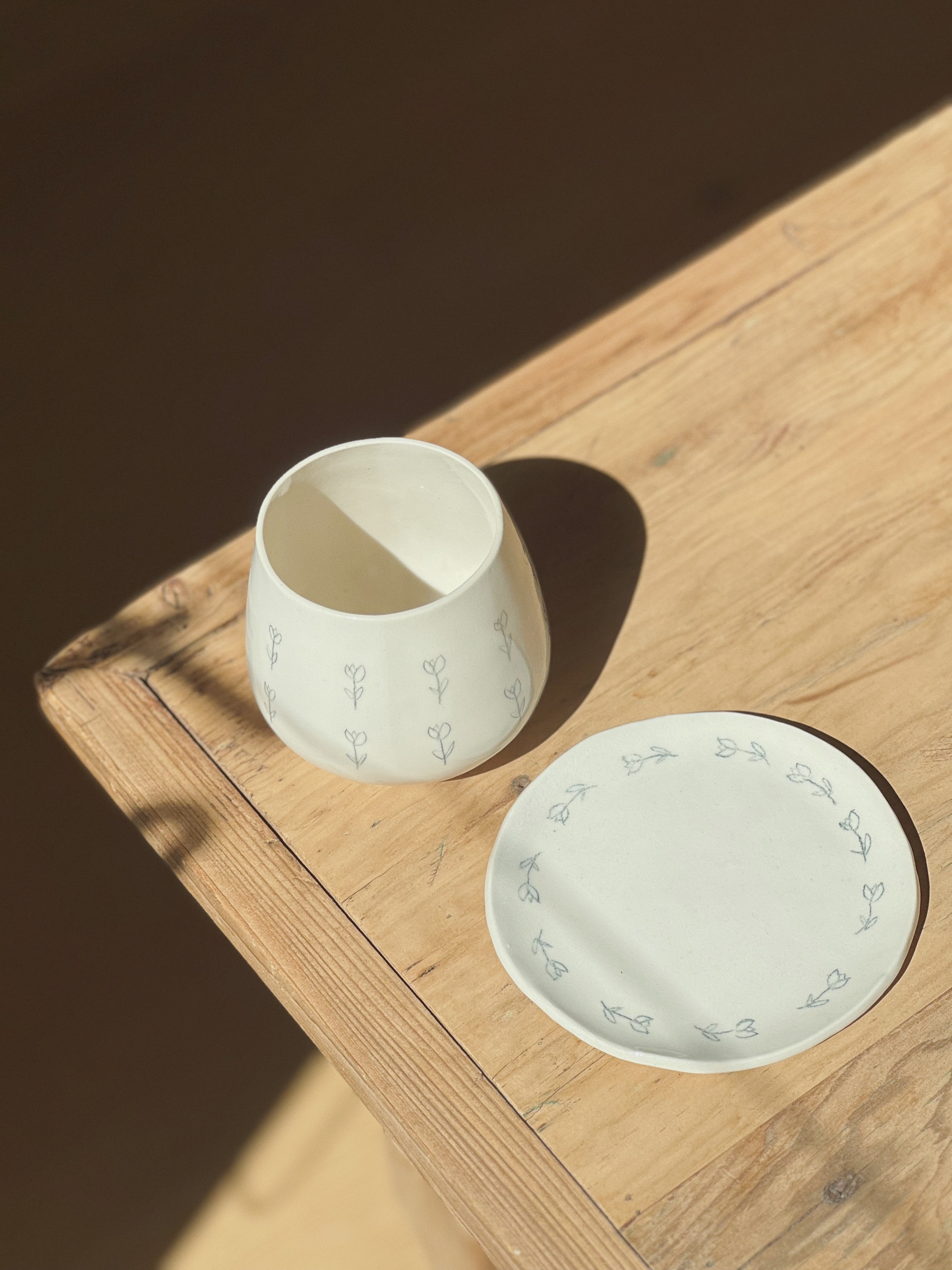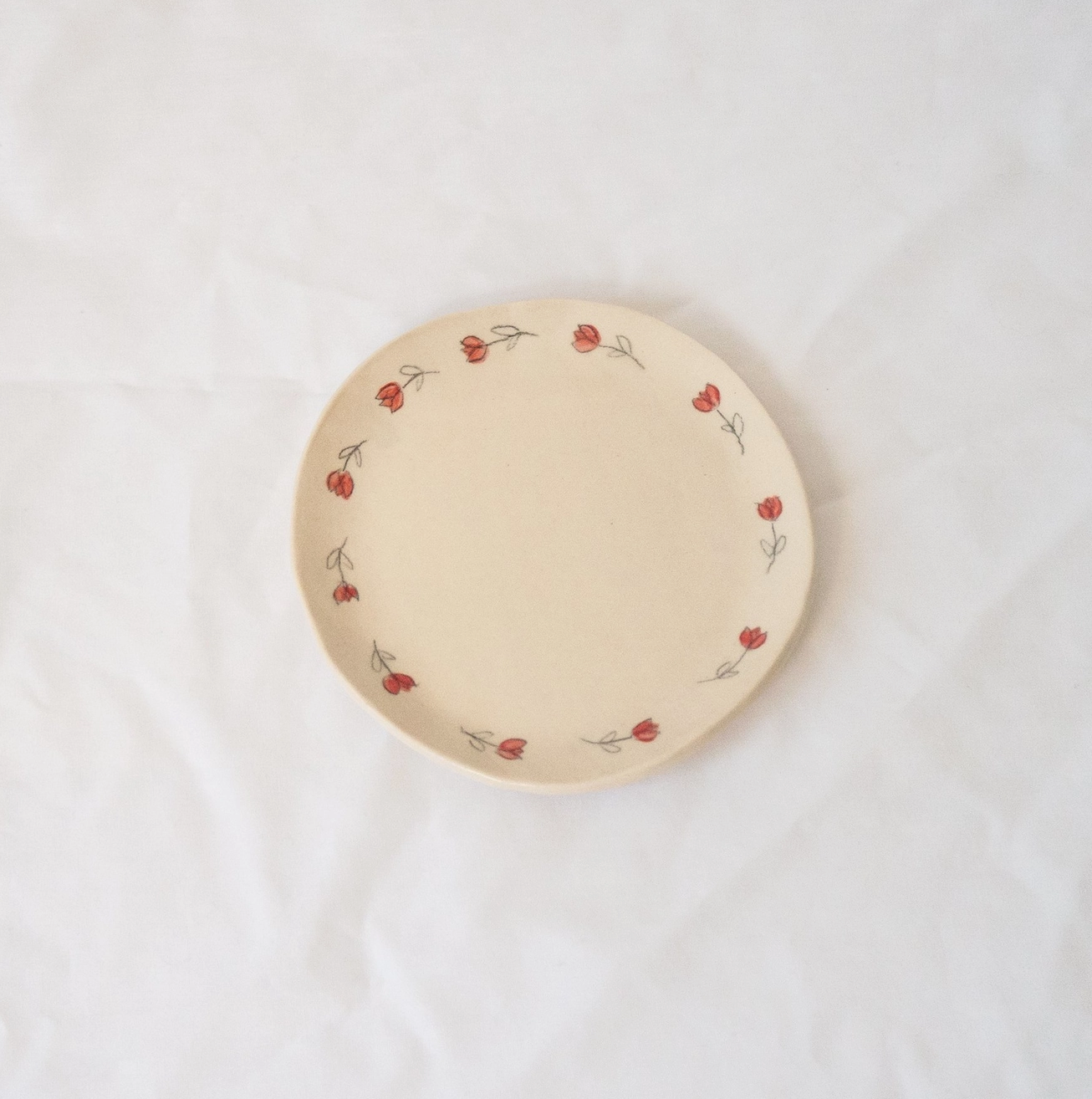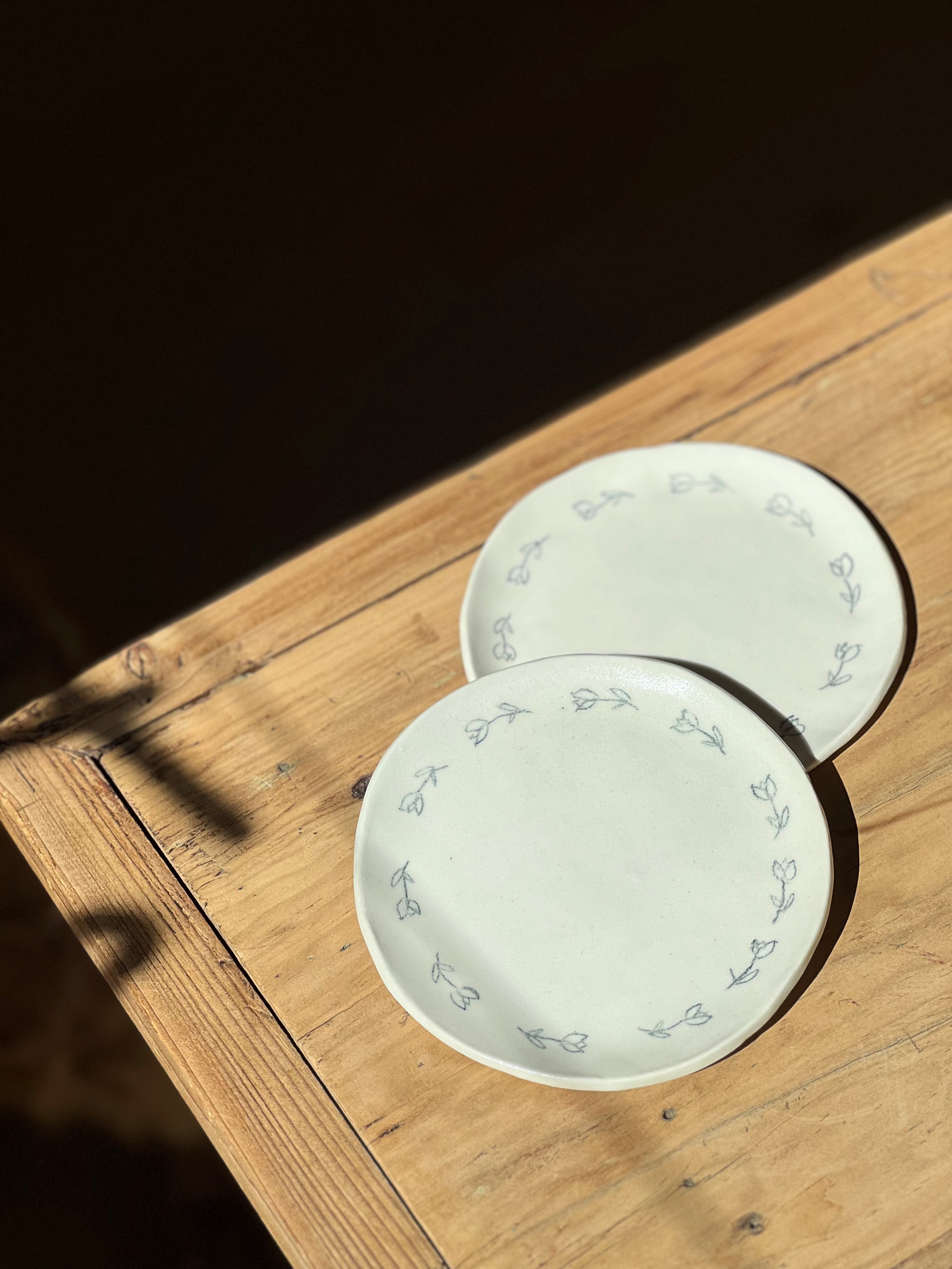 Handmade ceramic catchall plate perfect for organizing small household items, a spoon rest in the kitchen, a slice of pie, or as a home for your favorite jewelry. Thoughtfully sculpted, painted, and glazed by hand with food safe ceramic materials. Pairs perfectly with the Line Drawn Tulip Wine Cup!