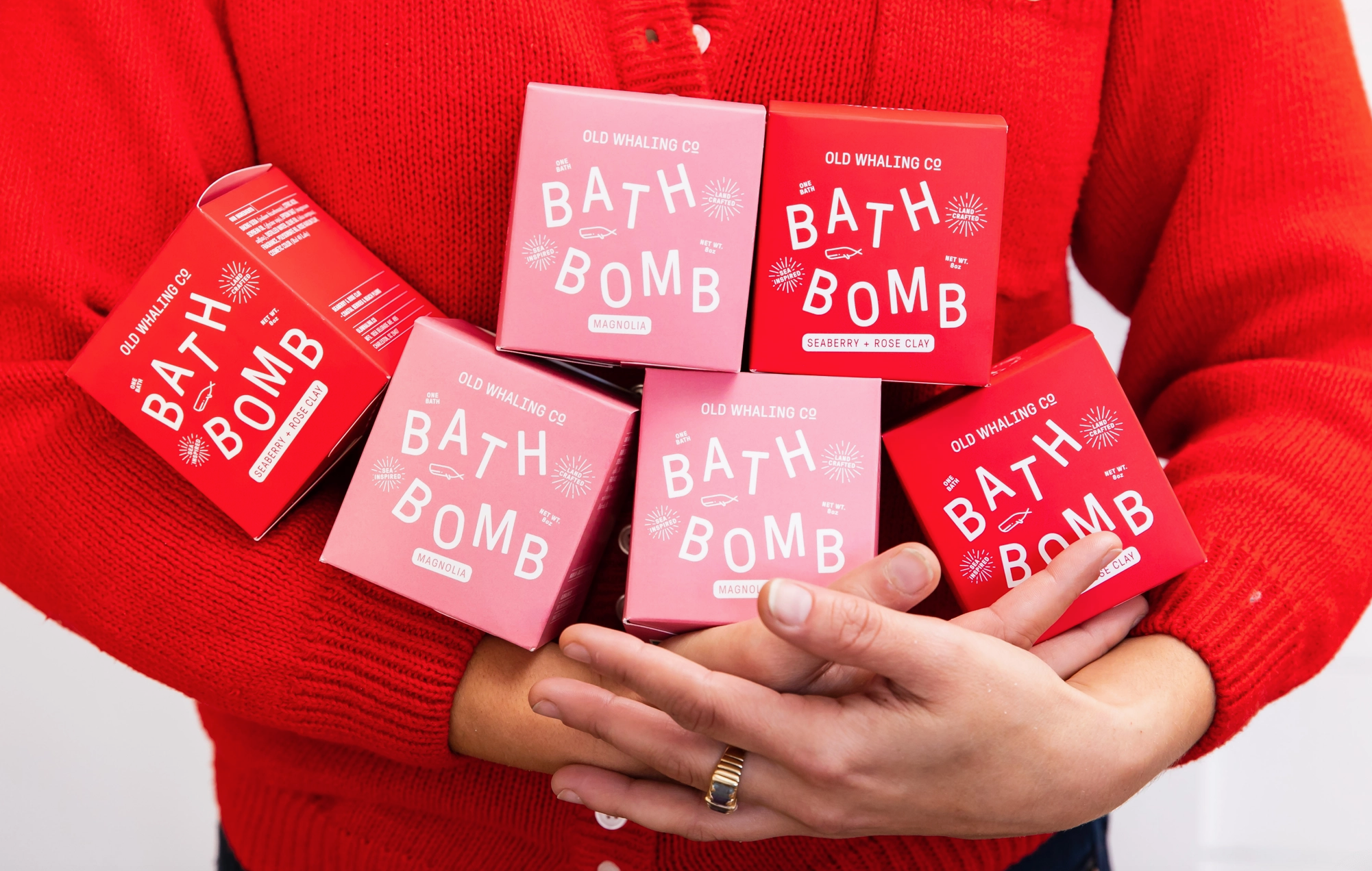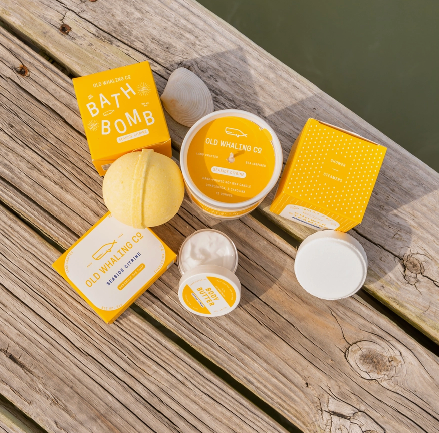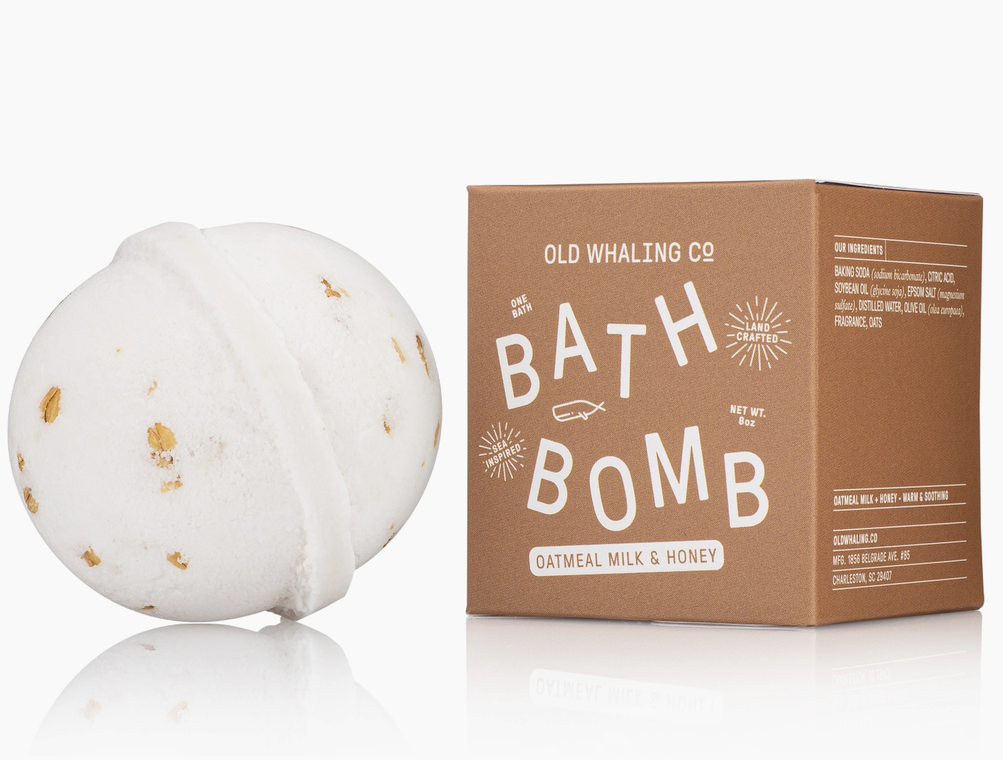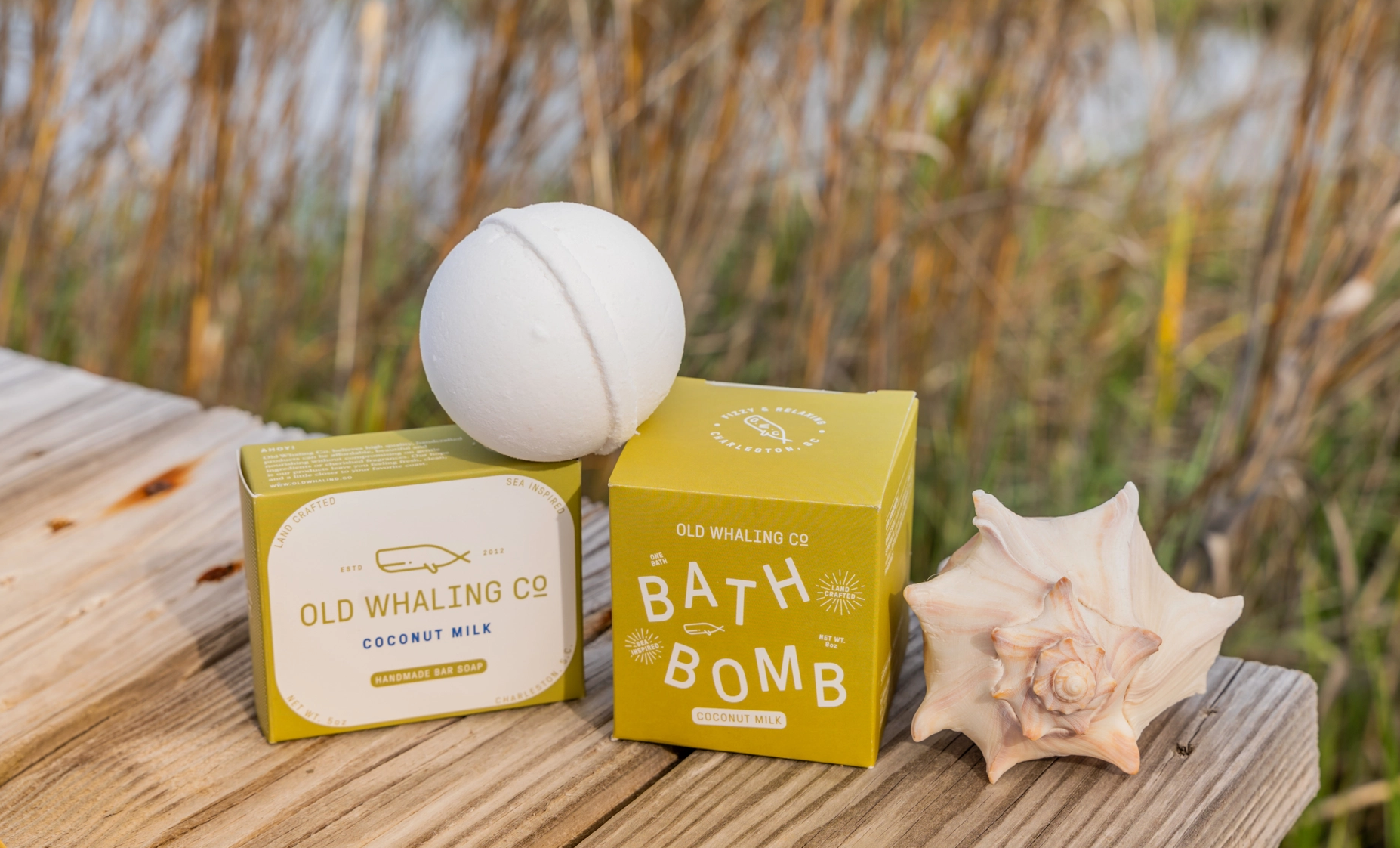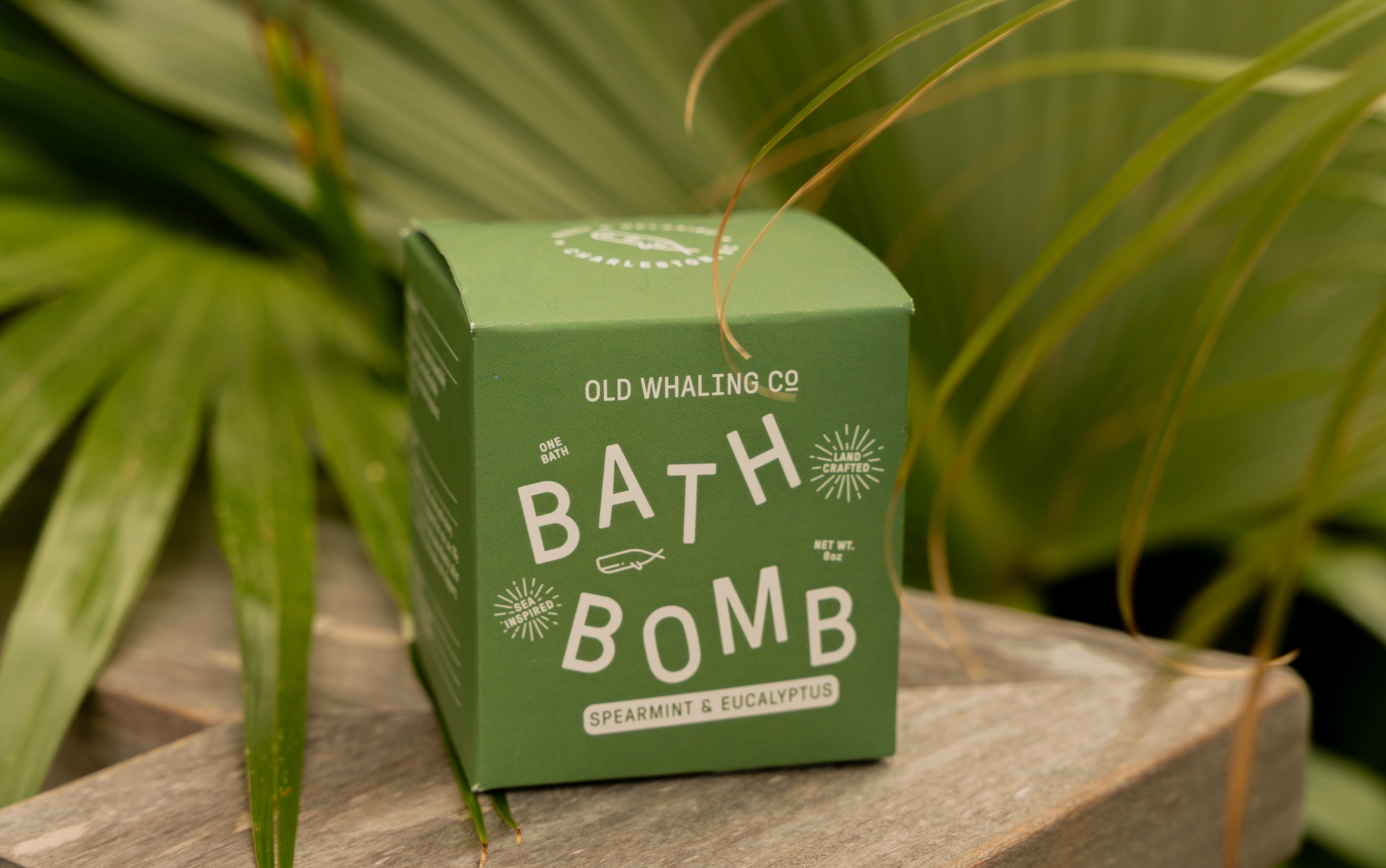 Handmade in historic Charleston, SC, with baking soda, citric acid, epsom salts, olive, and soybean oil, each Old Whaling Co. 8oz bath bomb will leave your skin feeling moisturized and lightly scented. These handcrafted bath bomb's have a soothing fizz and sea-inspired fragrance. These are perfect for a relaxing soak, rejuvenating the senses and cleansing the skin.