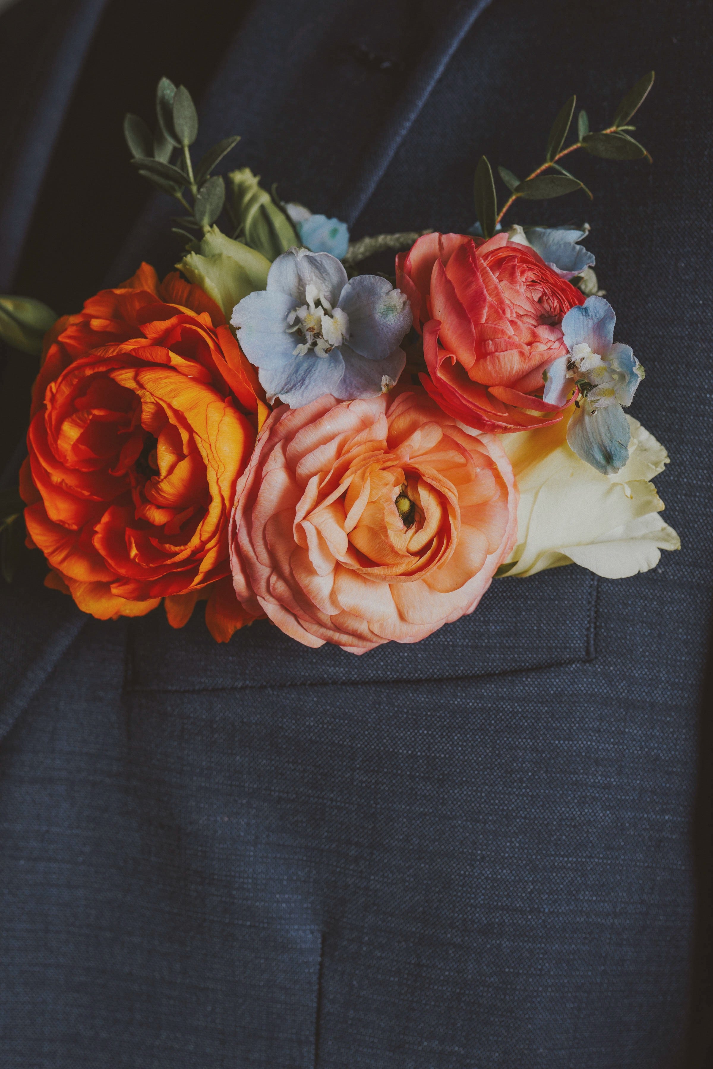 A more elevated approach to the boutonniere! Our Pocket Square is definitely a statement piece for any groom or groomsman. Fresh flowers and greenery are thoughtfully crafted onto a piece that slides right into the suit pocket.