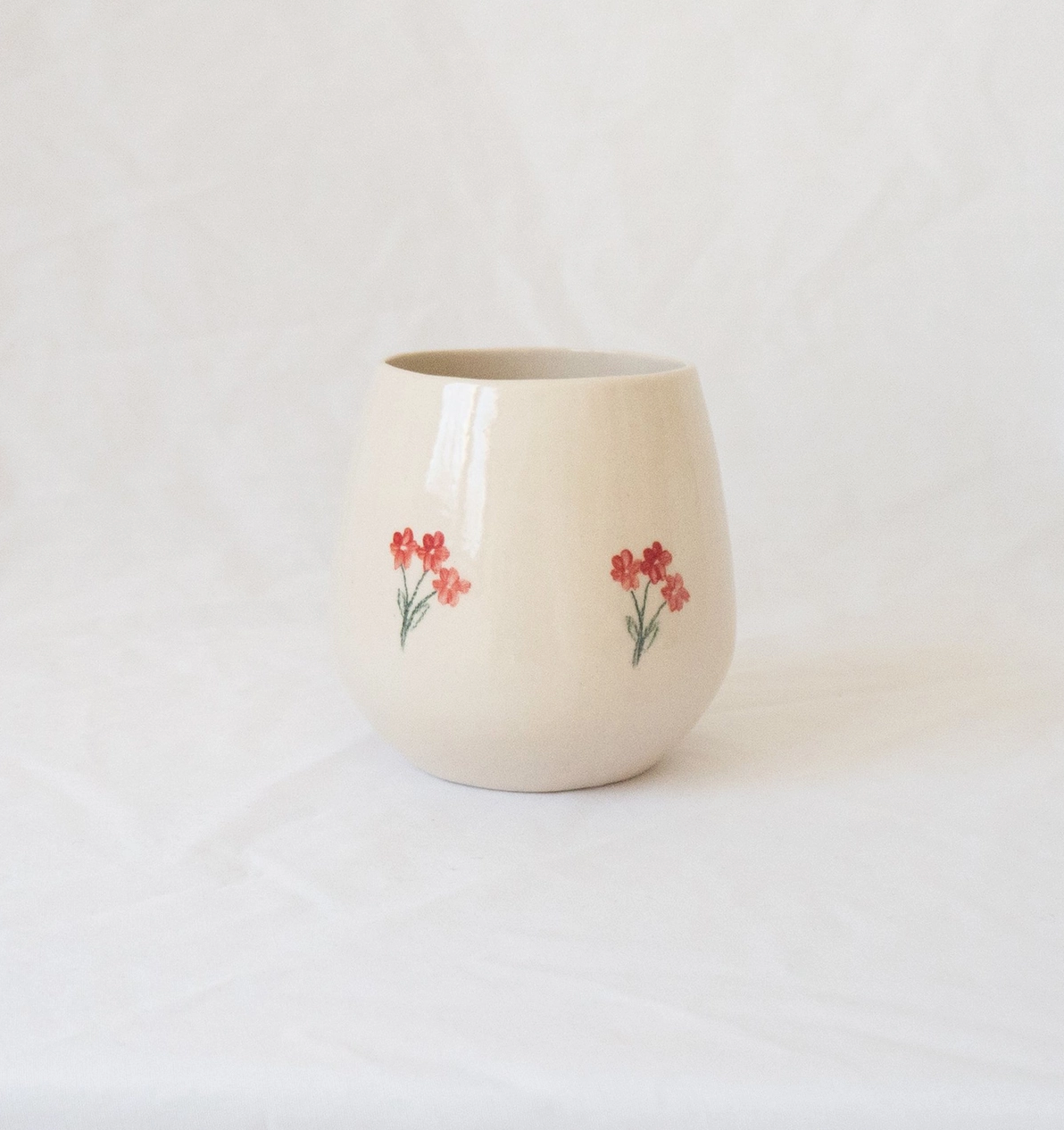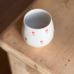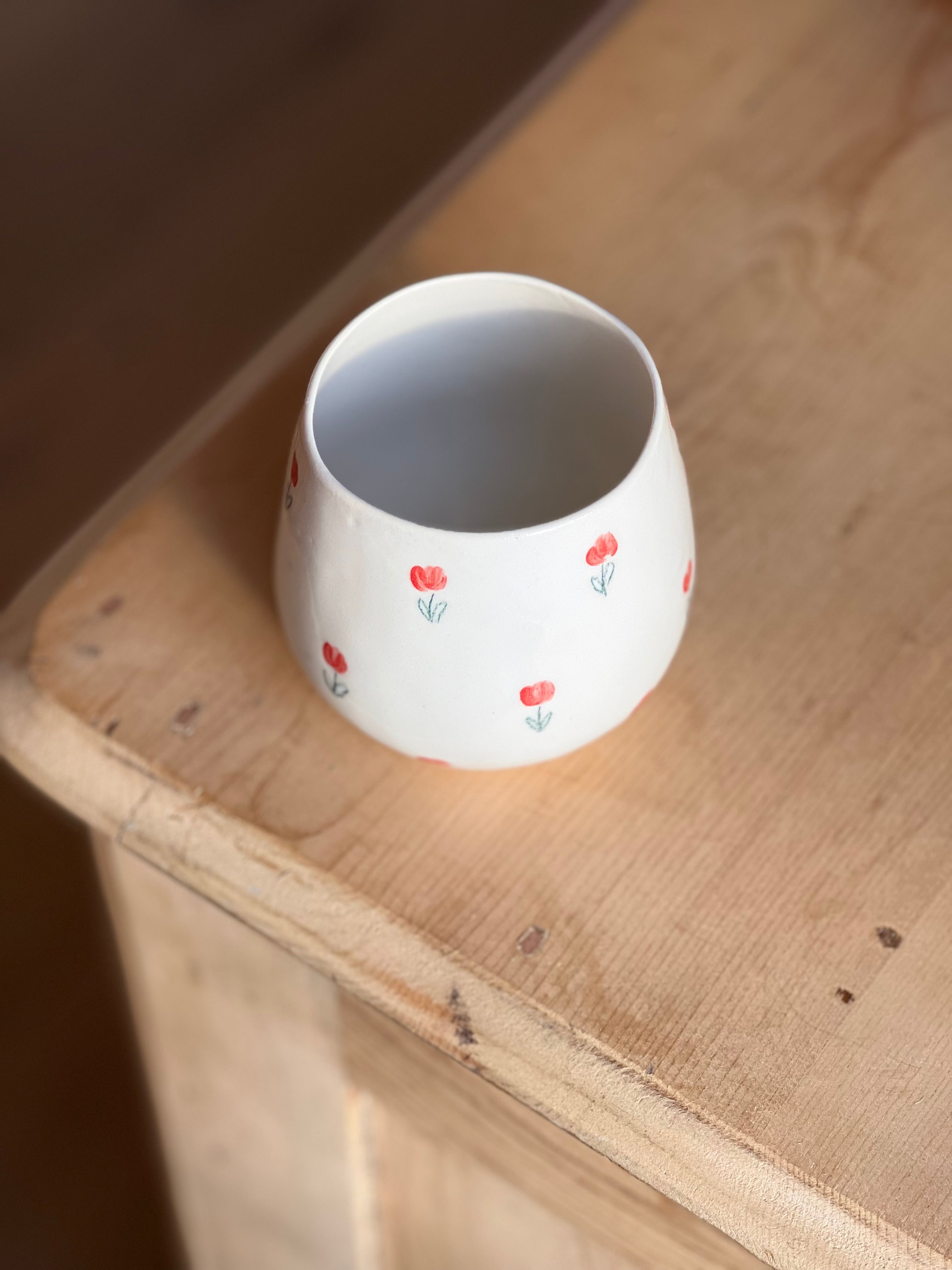 These darling ceramic mugs have dainty red tulips hand painted throughout or a simple tulip bouquet. Such a beautiful stemless wine glass to add to your kitchen. Erika Christine Ceramics is a one woman handmade business.