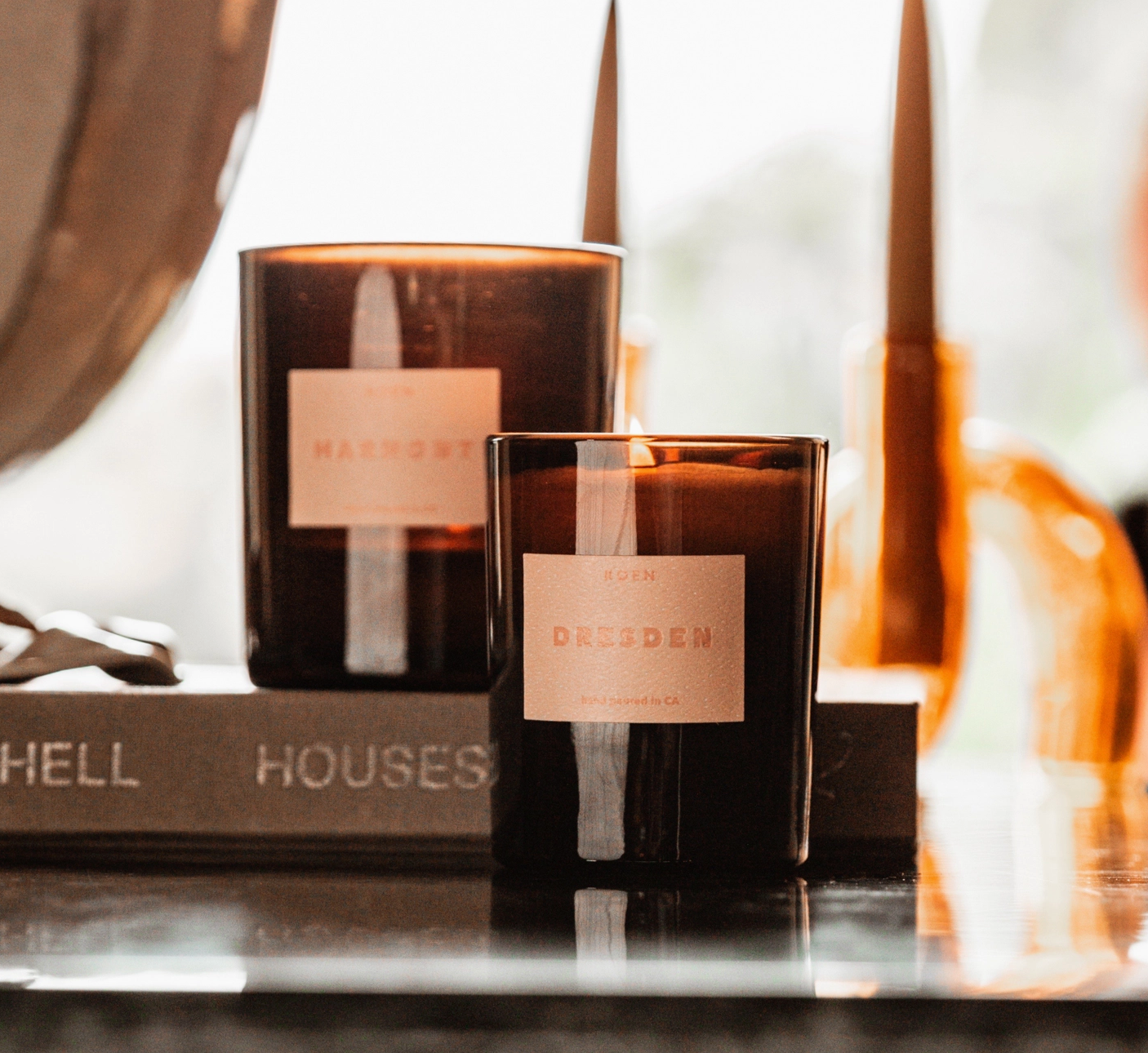 These ROEN candles have an earthy, luxurious scent. Hand-poured using a coconut + soy wax blend for a natural, clean burn.