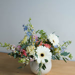 Flowers are subject to availability based on what's in season. We can't guarantee a certain flower, but we can guarantee your arrangement will be bursting with beautiful blooms!