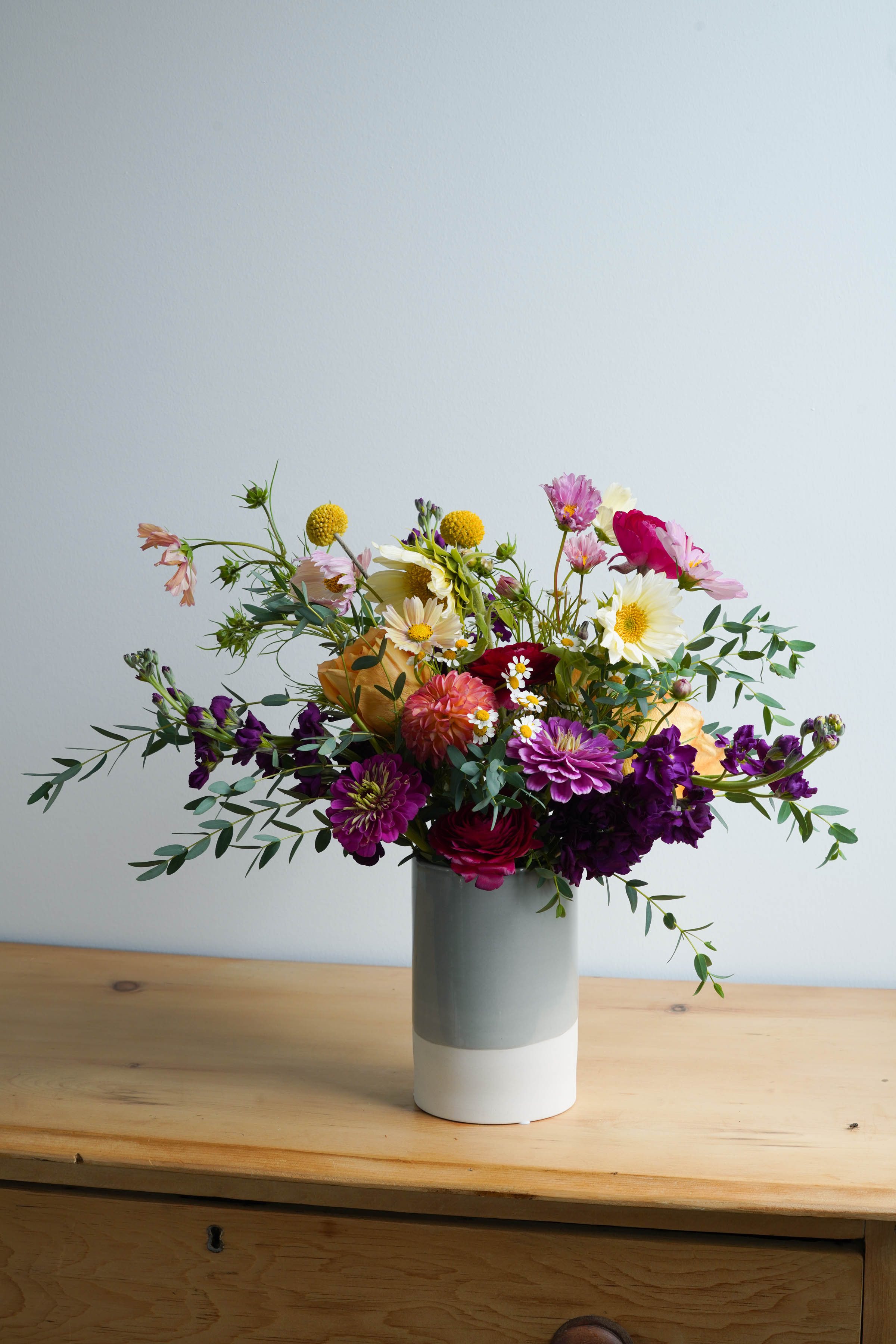 Flowers are subject to availability based on what's in season. We can't guarantee a certain flower, but we can guarantee your arrangement will be bursting with beautiful blooms!