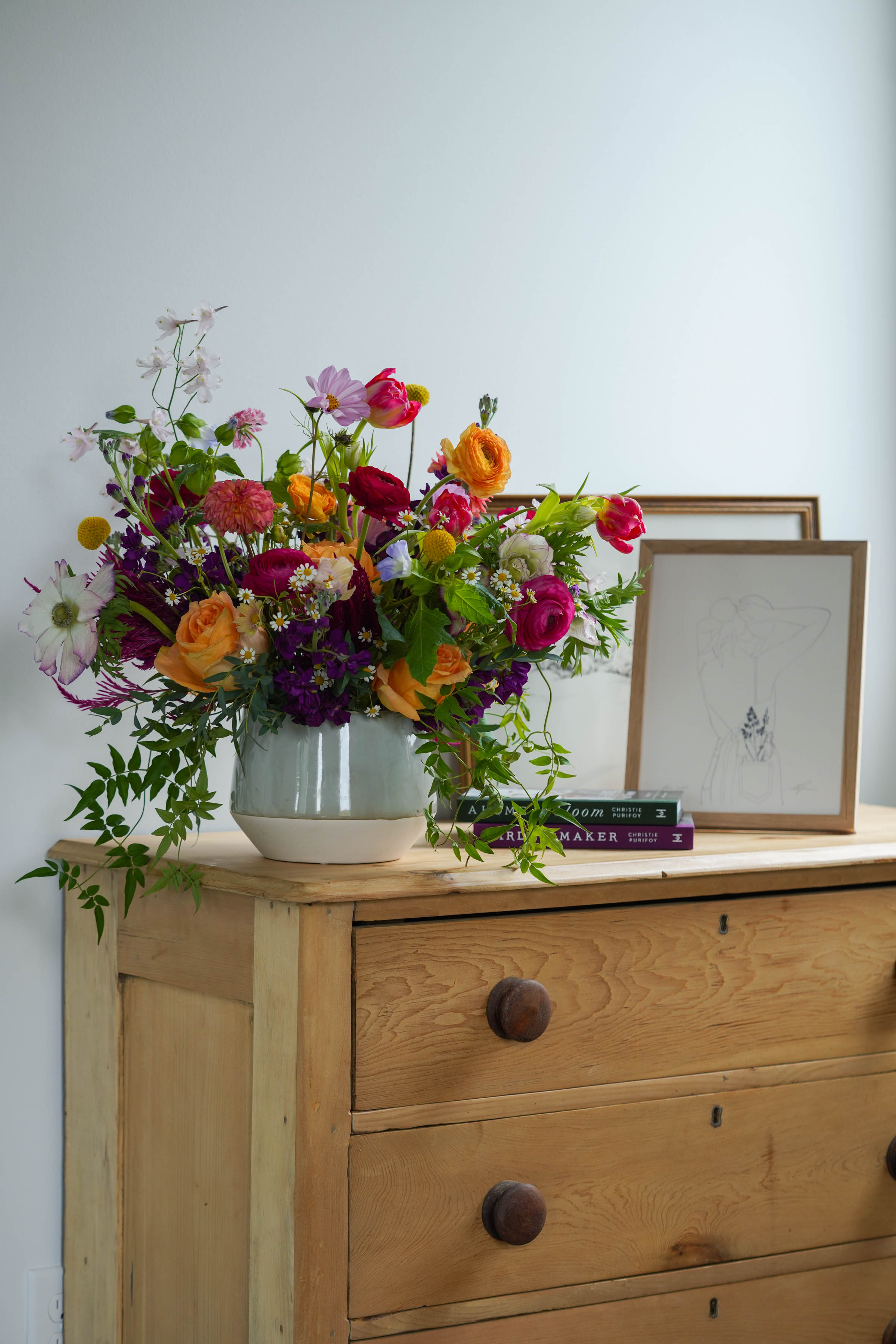 Flowers are subject to availability based on what's in season. We can't guarantee a certain flower, but we can guarantee your arrangement will be bursting with beautiful blooms!
